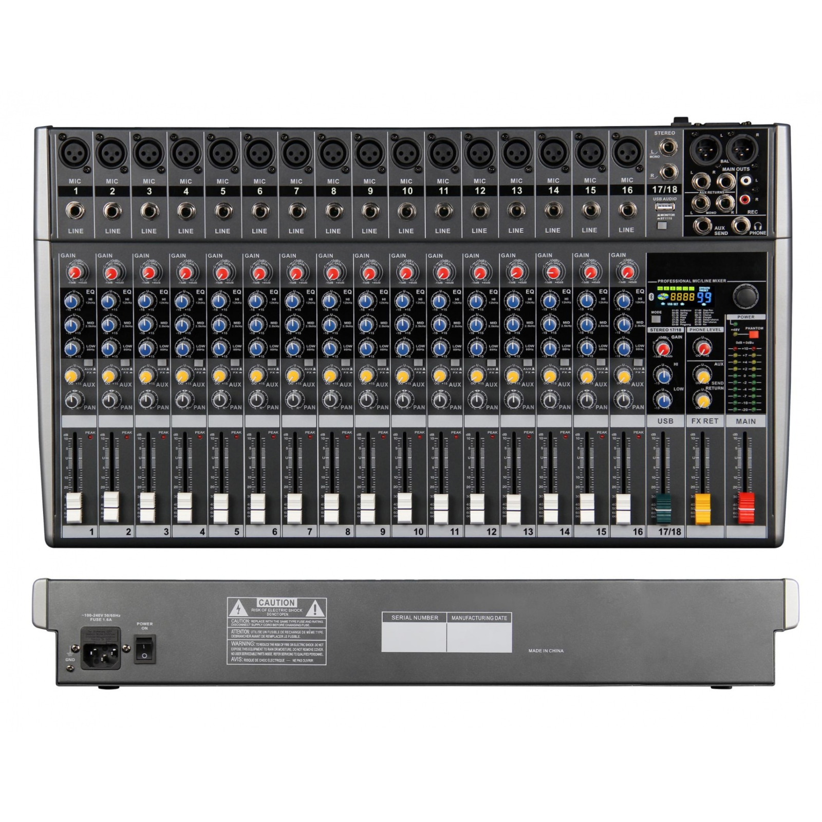 CMX MCX16U mixer, 16 channel mixer with USB and Bluetooth, CMX audio console, live sound mixer UAE, MP3 playback mixer, 24-bit DSP mixing desk, USB recording mixer