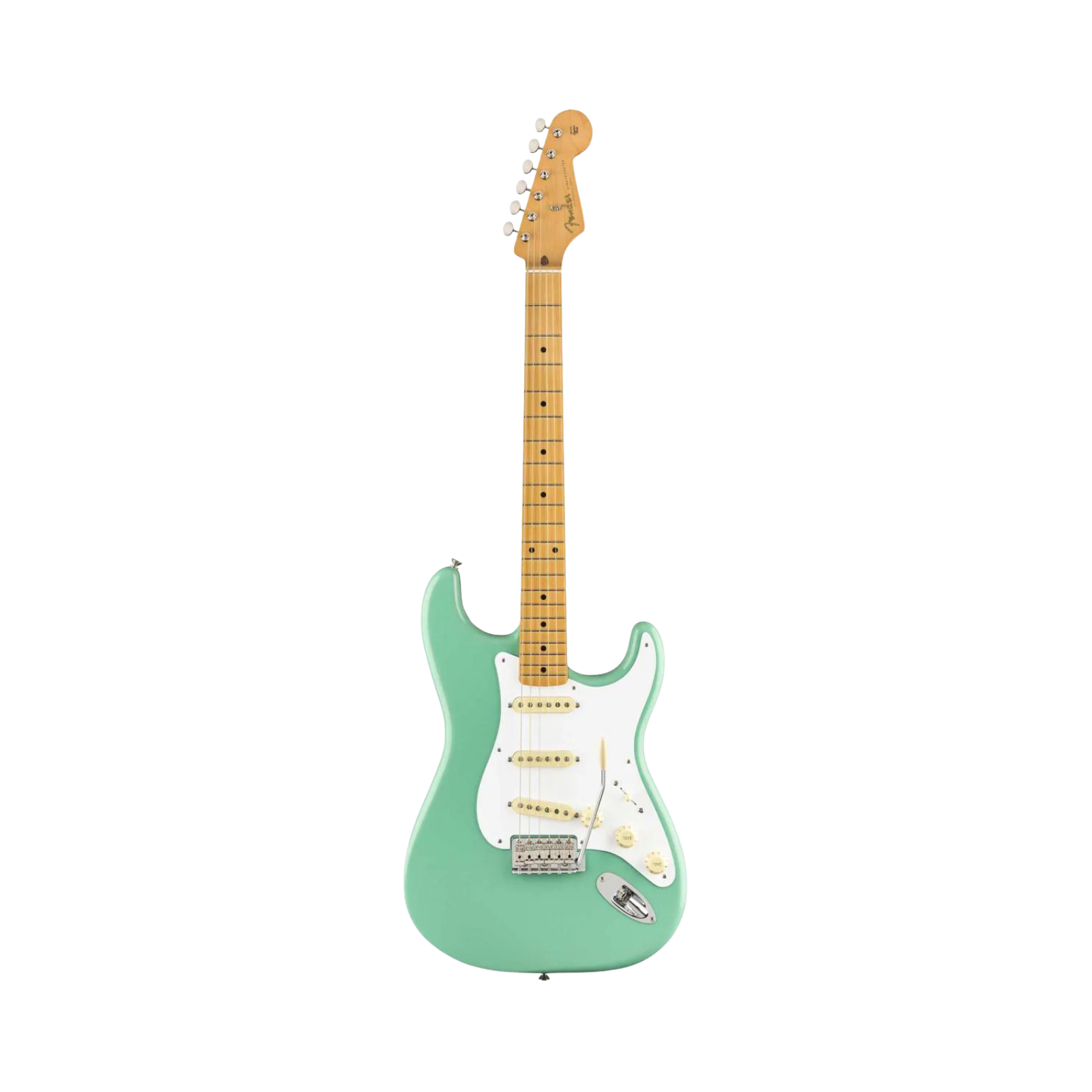 Equipped with three Vintage-Style ’50s Strat® single-coil pickups in an SSS configuration, it produces the signature Strat chime and clarity across all pickup positions. The comfortable Soft “V” maple neck provides a vintage-era grip that feels natural in the hand, while the traditional 7.25" radius maple fingerboard and 21 vintage-style frets deliver an authentic old-school playing experience. A classic vintage-style 6-point synchronized tremolo completes the traditional setup, allowing expressive vibrato and smooth classic Strat movement while maintaining the look and feel of early Fender designs.