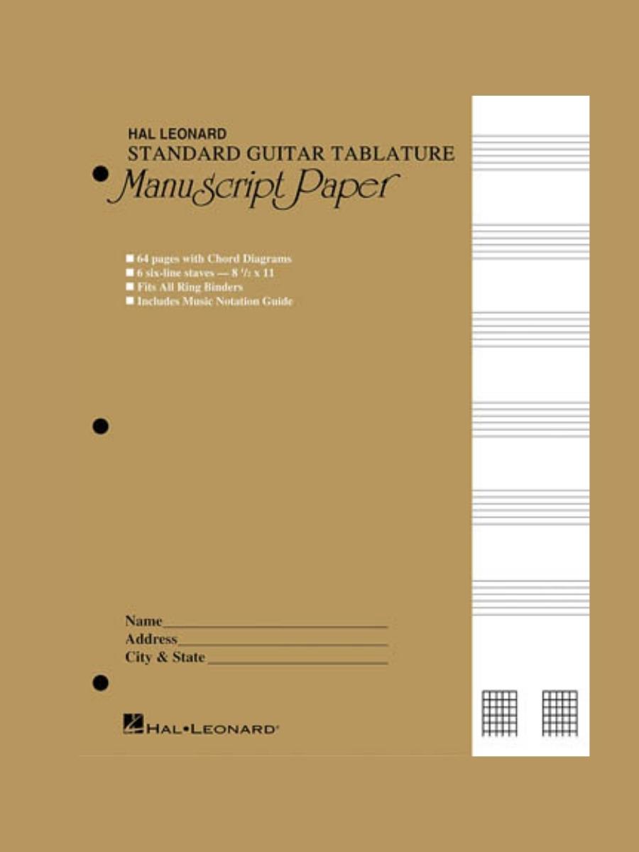 (Tan Cover) 64-page stitched book; 8 1/2? x 11?; six 6-line staves on each page; 8 blank chord diagrams printed at the bottom of each page; punched to fit all ring binders; Music Notation Guide.
