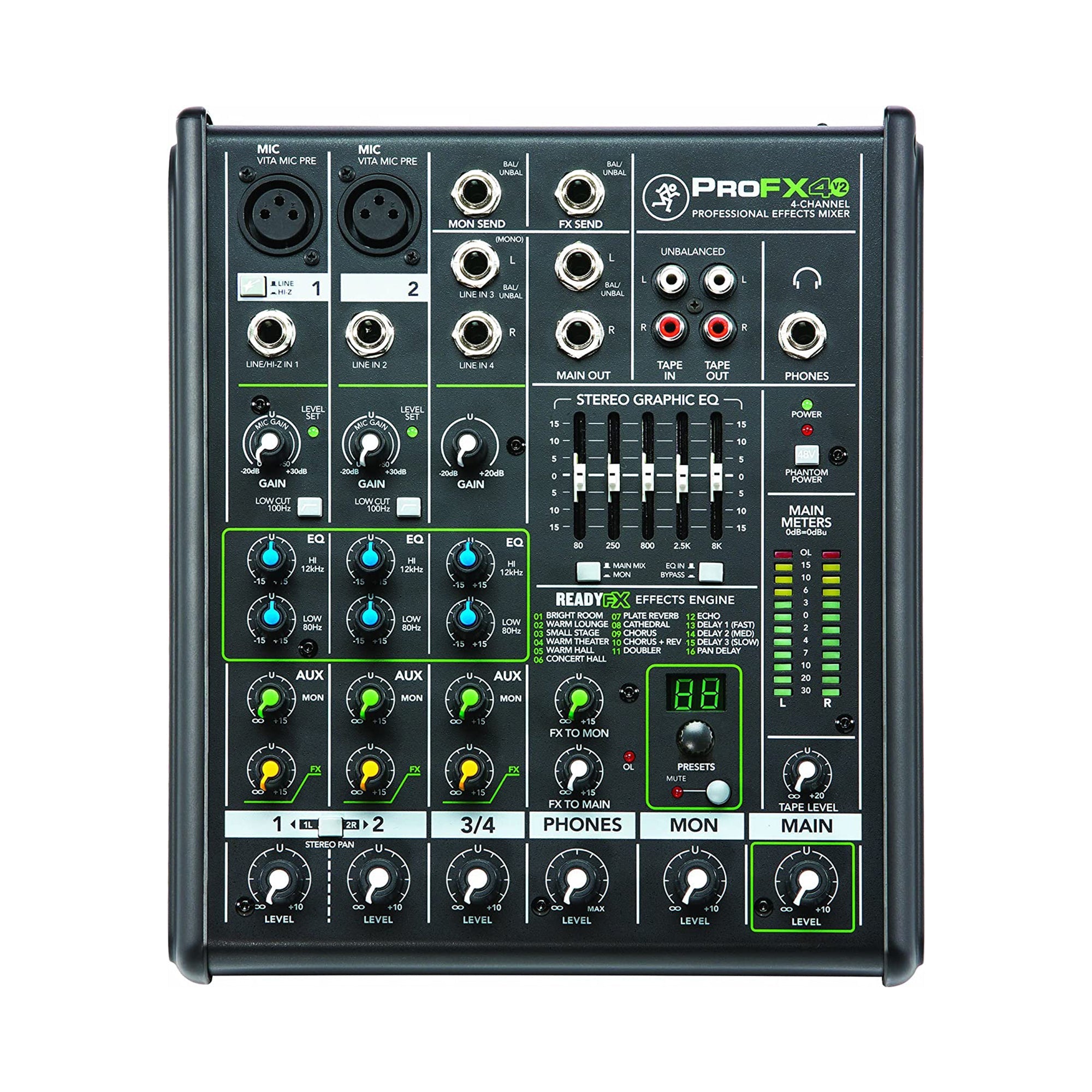 the Mackie ProFX4v2 mixer. All the tools you need for great sound
