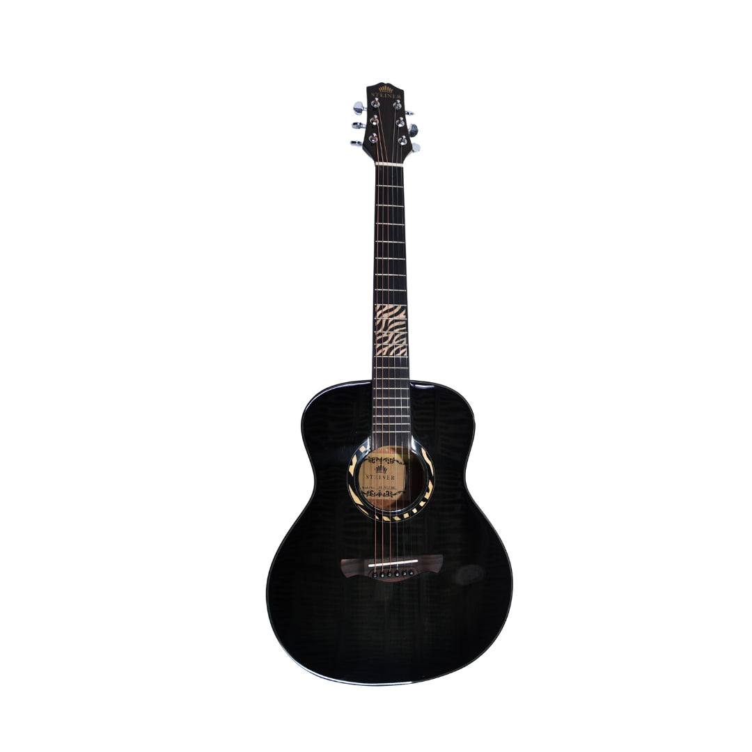 The Steiner AGM-12 3/4 Acoustic Guitar in Black is a compact and stylish instrument designed for beginners, young players, and musicians seeking a portable acoustic guitar. Featuring eye-catching aesthetics with its unique patterned fretboard and high-gloss black finish, it blends visual flair with practical playability.