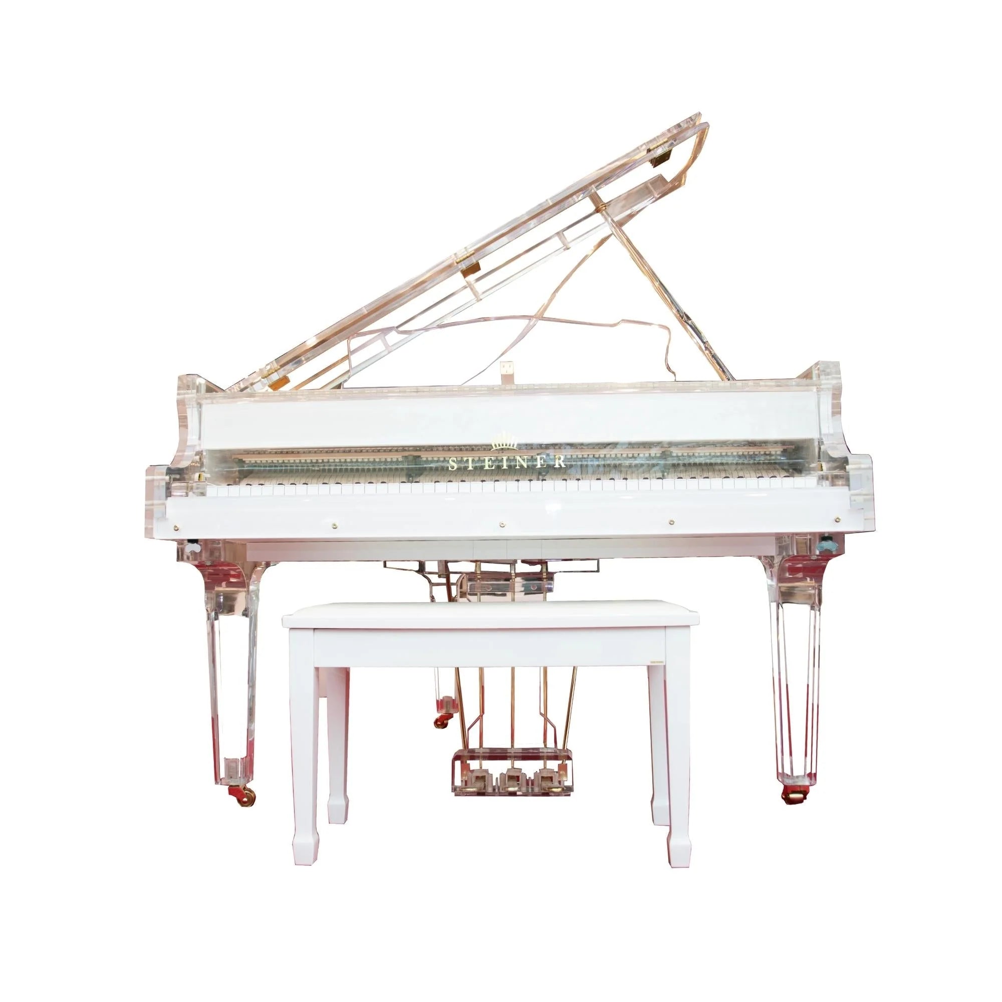 The Steiner HG-168ACrystal Grand Piano is a visually stunning instrument that merges traditional craftsmanship with cutting-edge innovation. Now enhanced with the WSP Self-Play System, this transparent grand piano offers not only remarkable acoustic performance but also the ability to play automatically—perfect for luxury settings, events, or personal enjoyment without a pianist present.