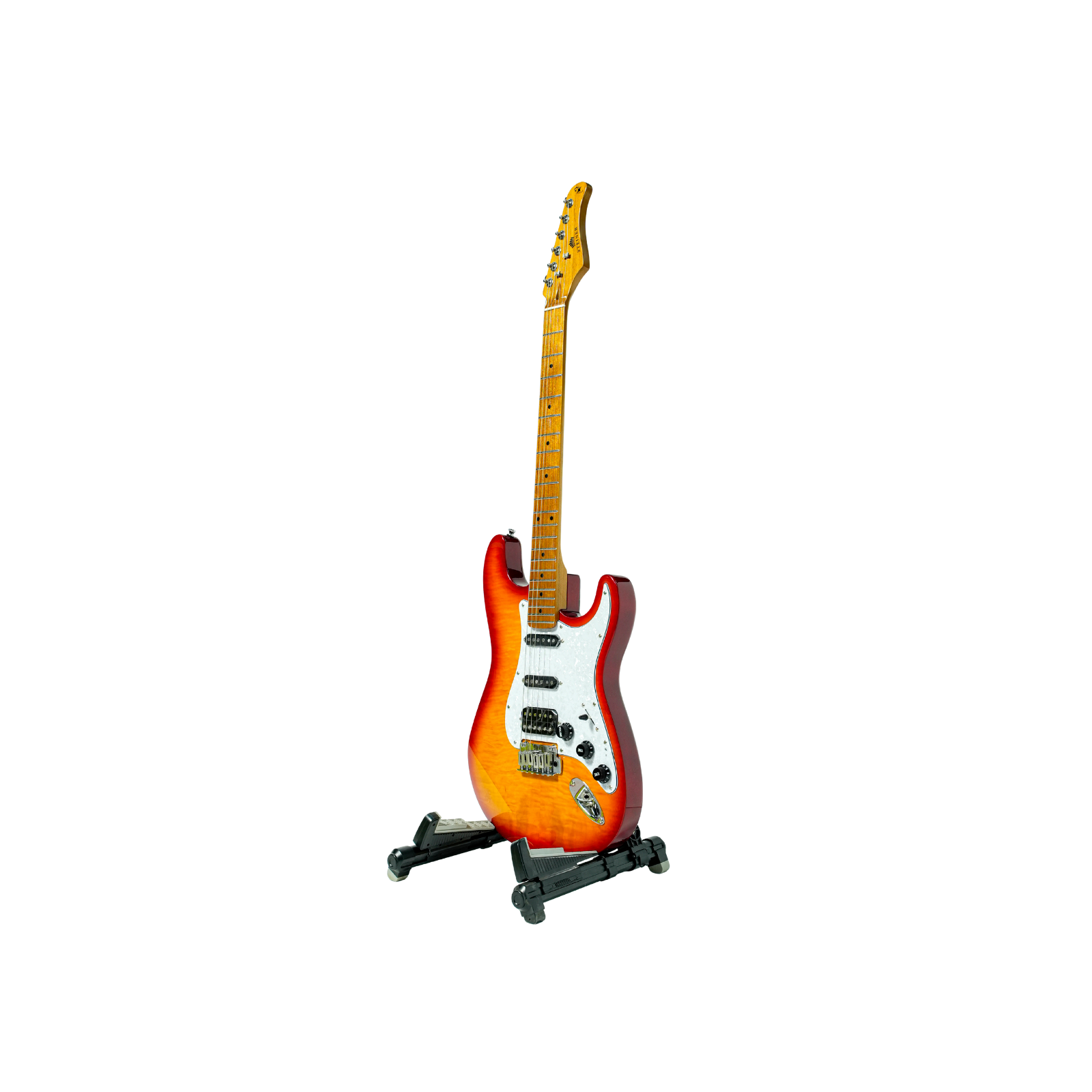 Featuring a resonant flame maple and linden body, a smooth roasted maple neck and fingerboard, and an H-S-S pickup configuration with Alnico V pickups, the ST-657 delivers a wide tonal range suitable for multiple genres. The striking high-gloss Sunburst finish adds a classic visual appeal inspired by timeless electric guitar designs.