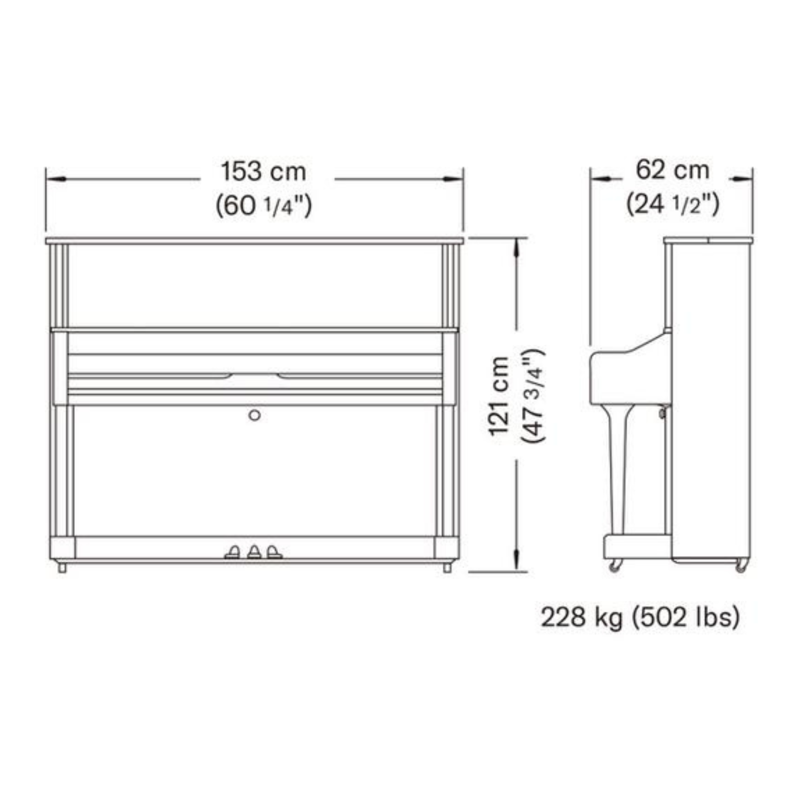 | Number of Pedals | 3 (Soft, Mute, Damper) |